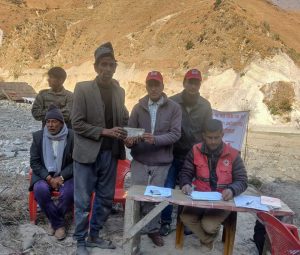 विनोद शाही मुगु-गत असोज१९ गतेदेखि २४ गते सम्म परेको अबिरल वर्षाका कारण पिडित भै पुर्ण वा आंशिक रूपमा क्षेती भएका सोरु गाउँपालिका का १ देखि ११ वडाका १०४ परिवार लाई आवश्यक खाधान्न खरिद को लागि नगद राहत बितरण गरिएको छ ।