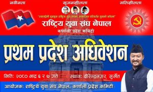 वीरेन्द्रनगर । राष्ट्रिय युवा संघ नेपाल, कर्णाली प्रदेशको अधिवेशन भदौ महिनाको पहिलो हप्ता हुने भएको छ। नेकपा एमाले निकट युवा संघको प्रदेश कमिटीको दोस्रो पूर्ण बैठकले अधिवेशन भदौ ६ र ७ गते गर्ने निर्णय गरेको हो।