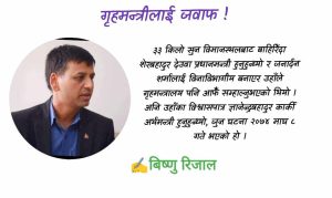 विमानस्थलबाट बाहिरिएको ३३ किलो सुनका बारेमा खोजबिन गर्दा एक तोला पनि पाइएन’ भनेर हिजो संसद्मा गृहमन्त्री बोलेको सुनियो र अरुले पनि त्यो कुरा उठाइरहेका छन् । यसको छानबिन केपी शर्मा ओली प्रधानमन्त्री हुँदा भएकाले त्यसप्रति लक्षित गरी बोलेको बुझिन्छ ।