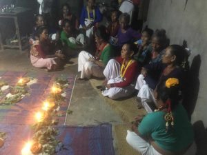 थारु संस्कृतिविद अशोक थारुकाअनुसार ब्रतालु महिला तथा युवतीहरू साँझपख घरको भित्ता वा सामुदायिक भवनमा कोरिएको विभिन्न पौराणिक चित्रमा टिक्ने अर्थात पूजा गर्ने गर्दछन् । टिक्ने काम सम्पन्न भएपछि लगिएका फलफूलहरू आपसमा बाँधेर खाने प्रचलन रहेको छ ।