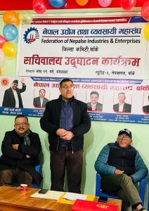नेपालगन्ज/ नेपाल उद्योग तथा व्यवसायी महासंघ, जिल्ला कार्यसमिति बाँकेको सचिवालय विधिवत रुपमा उद्घाटन गरिएको छ ।