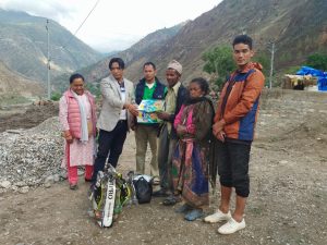 नगर प्रमुख स्वबर्ण बुढा, जिल्ला समन्वय समितिका उपाध्यक्ष तेजेन्द्र ब. बुढा, डोल्पा उद्योग वाणिज्य संघका अध्यक्ष लालिमान बुढा, नेपाली कांग्रेस जिल्ला सचिव हिक्मत शाही, नेपाली कांग्रेस क्षेत्र नं. क. का सभापती केशव बुढा र ठूलीभेरी नगरपालिका शिक्षा शाखा नि. प्रमुख कमल बुढा सहितको टोलीले पहिरोको स्थालगत निरिक्षण गरि पिडितलाई ग्यास चुल्हाको सेट, ५० केजी चामल, ५ केजी दाल, चाउचाउ, चिउरा, नुन, तेल, चिनी जस्ता खाद्यन्न सामाग्री वितरण गरेको छन ।