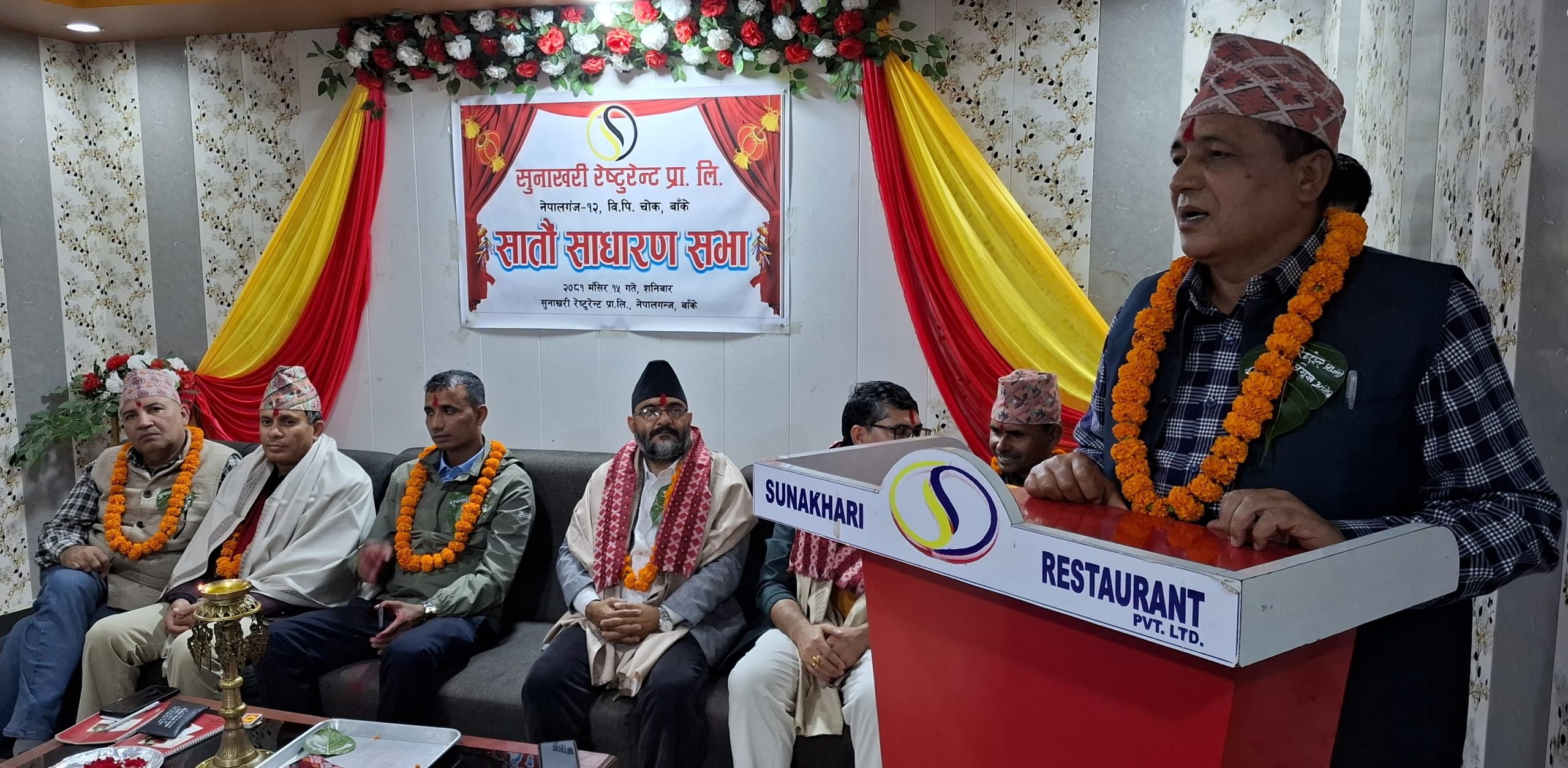 कार्यक्रमका प्रमुख अतिथि, होटल व्यवसायी संघ बाँके अध्यक्ष रंगबहादुर खड्काले अर्थतन्त्र धराशयी हुँदा त्यसको प्रत्यक्ष प्रभाव होटल, रेष्टुरेन्ट तथा पर्यटन व्यवसायमा परिरहेको बताउनुभयो । ‘त्यस प्रभावबाट उद्दार गर्ने सरकारी नीति नहुँदा व्यवसायीहरूलाई निकै मर्का परिरहेको छ’, अध्यक्ष खड्काले भन्नुभयो, ‘तीन तहकै सरकारले व्यवसायीहरूलाई पलायन हुनबाट रोक्न आर्थिक आवश्यक छ ।’