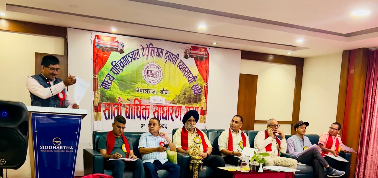 नेपालगञ्ज, – मध्यपश्चिमाञ्चल पेट्रोलियम ढुवानी व्यवसायी संघको सातौँ साधारण सभा शनिबार भव्यतापूर्वक सम्पन्न भएको छ। संघका अध्यक्ष अमरजीत सिंहको अध्यक्षतामा भएको सभामा संघको विगत वर्षको गतिविधि, पेट्रोलियम ढुवानी क्षेत्रका चुनौती र समाधानका उपायबारे व्यापक छलफल गरिएको थियो।