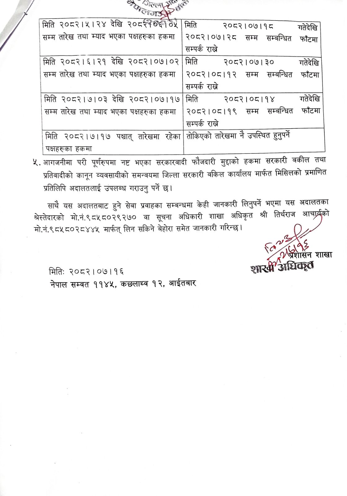 अदालतका प्रशासन शाखा प्रमुख श्री तिर्थराज आचार्य का अनुसार —