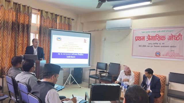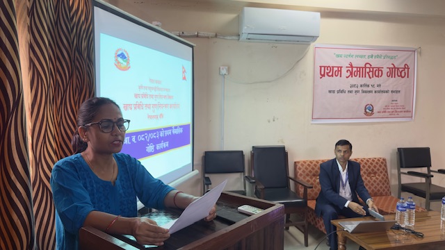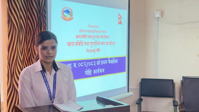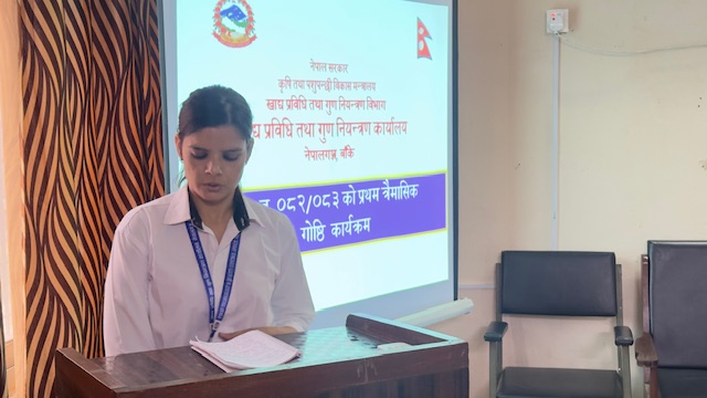 नेपालगंज, बाँके । आ.व. २०८२/८३ को वार्षिक स्वीकृत कार्यक्रम अनुसार खाद्य प्रविधि तथा गुण नियन्त्रण कार्यालय नेपालगंजले प्रथम त्रैमासिक प्रगति समीक्षा गोष्ठी कार्तिक १८ गते सम्पन्न गरेको हो ।