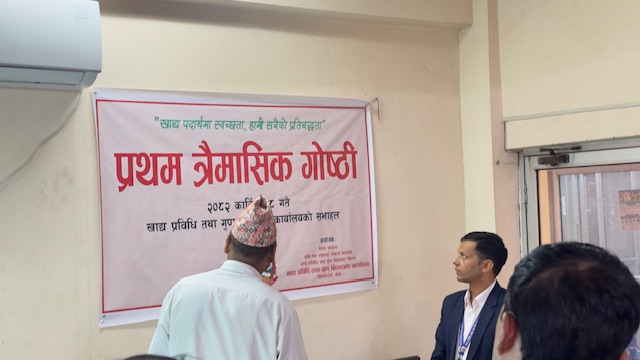 खाद्य प्रविधि तथा गुण नियन्त्रण कार्यालय, नेपालगंजका प्रमुख प्रशान्त पोखरेलको अध्यक्षतामा सम्पन्न कार्यक्रममा बाँकेका सहायक प्रमुख जिल्ला अधिकारी उमाकान्त अधिकारी प्रमुख अतिथिको रूपमा उपस्थित रहनु भएको थियो।