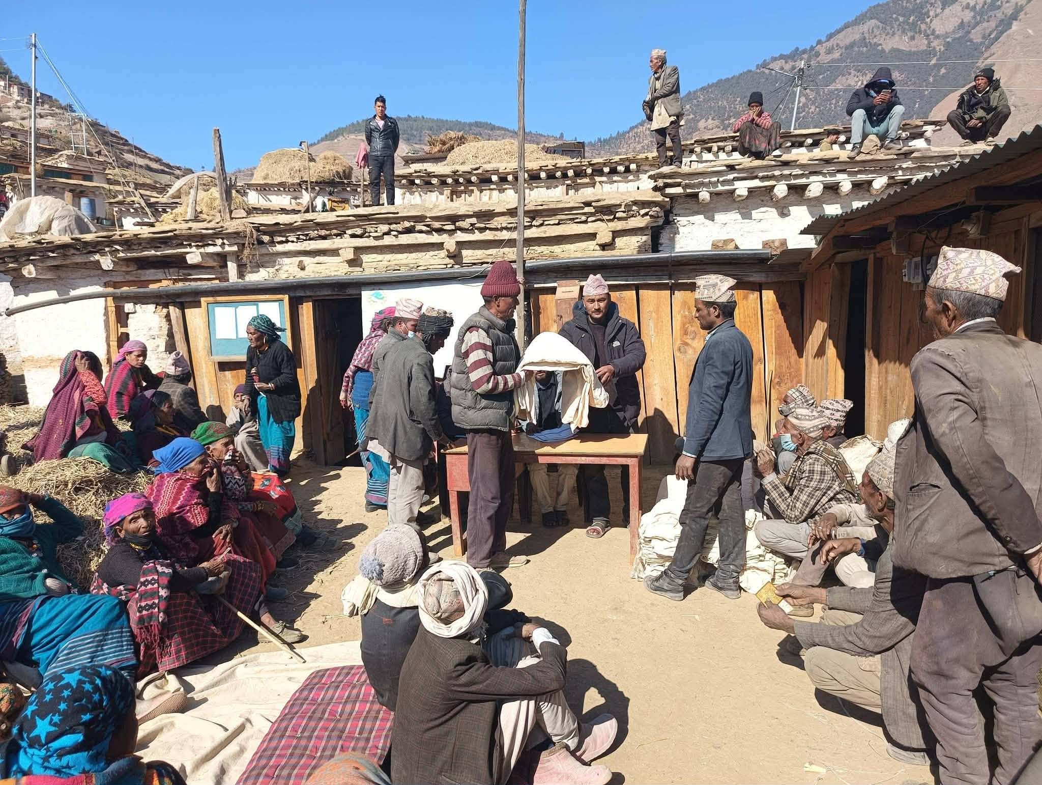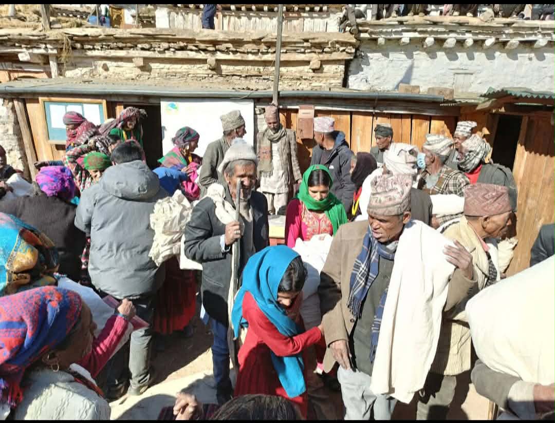 मुगु — सोरू गाउँपालिका वडा नम्बर ६ ले आर्थिक वर्ष २०८२/०८३ को वार्षिक स्वीकृत बजेटबाट सञ्चालन गरिएको “वडा अध्यक्षसँग अपाङ्ग, ज्येष्ठ नागरिक तथा एकल महिला” कार्यक्रमअन्तर्गत लक्षित वर्गलाई न्यानो कपडा वितरण गरेको छ।